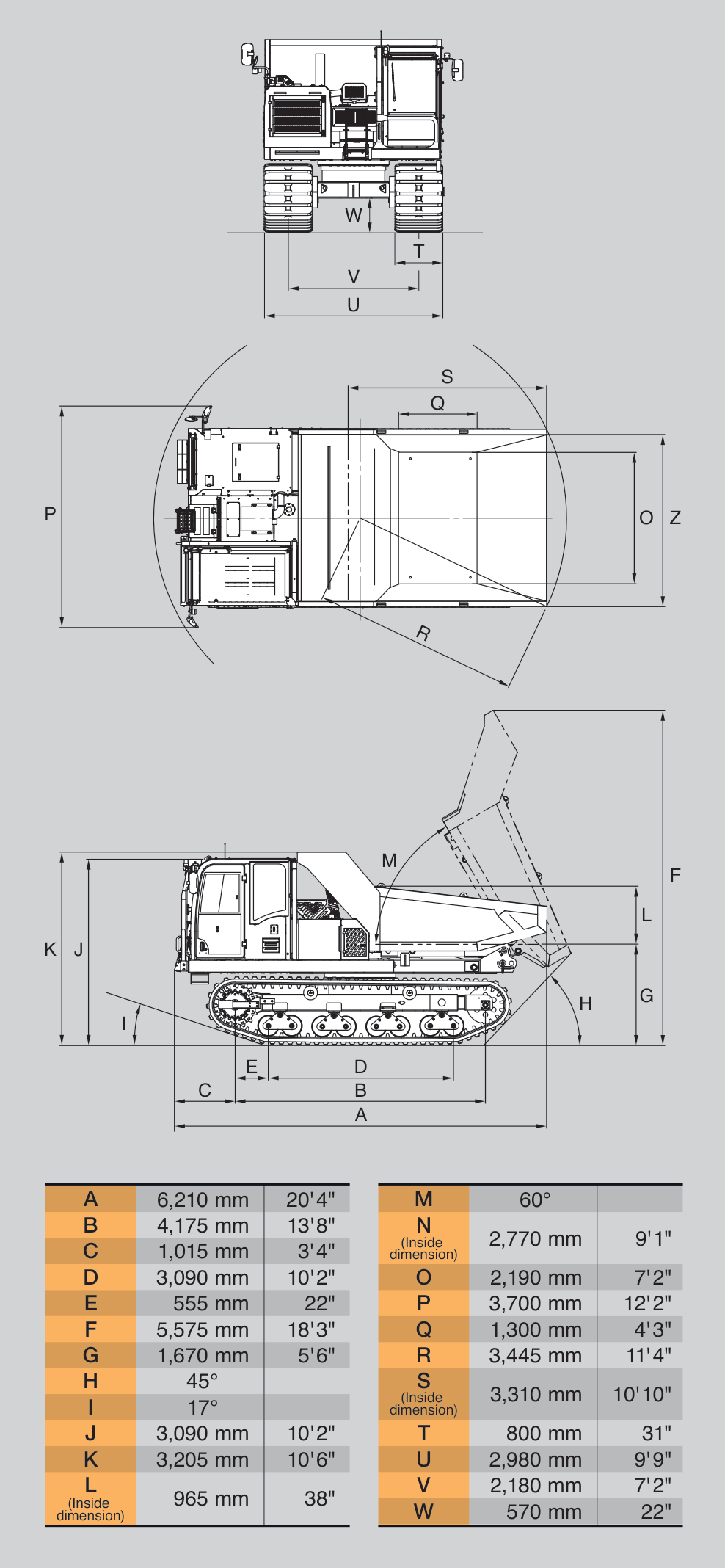 | Dump Capacity (Struck/Heaped) | 5.75 / 7.95 m³ | |